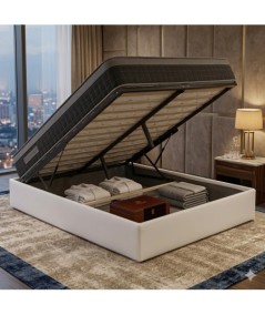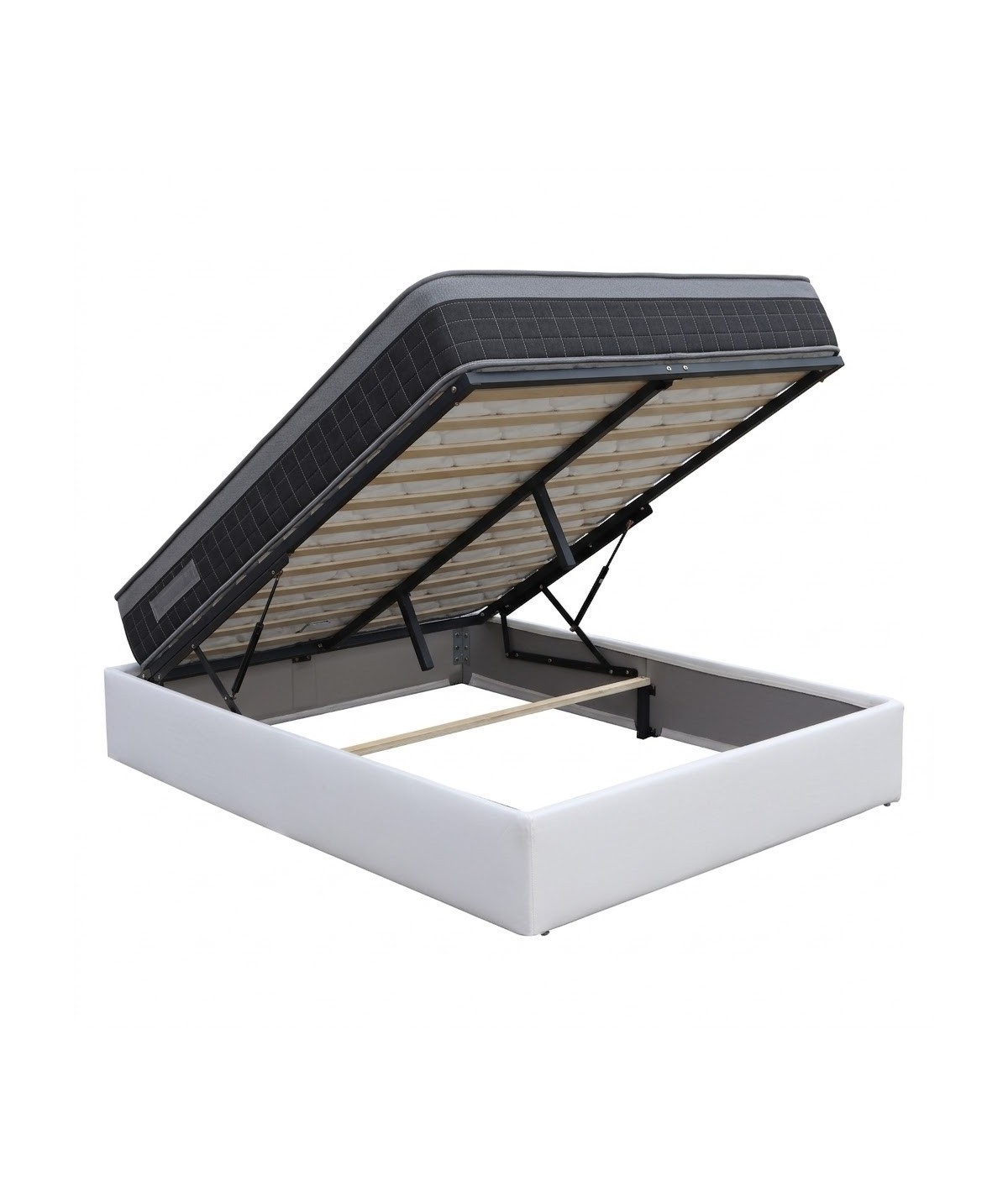 Ensemble Lit Coffre et Matelas 25 cm – Sommier Relevable avec Grand Coffre de Rangement et Vérins Hydrauliques – Matelas Soutien
