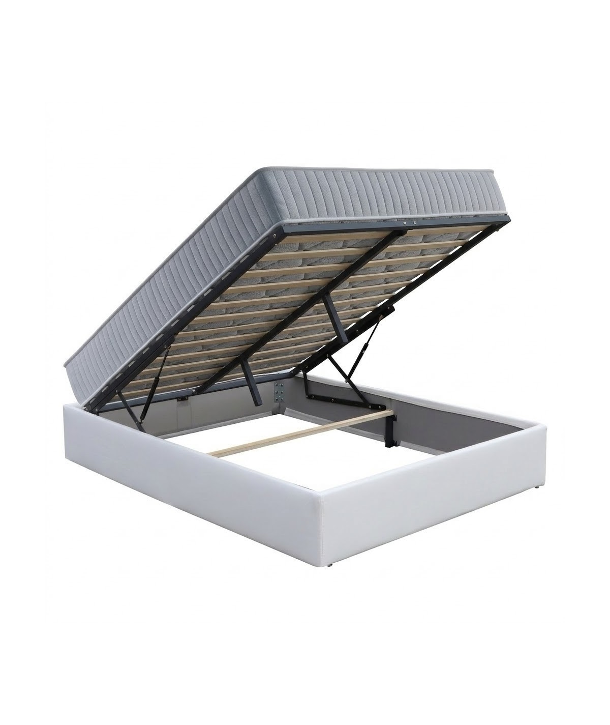 Ensemble Lit Coffre et Matelas Ressorts 20 cm – Sommier Relevable avec Grand Coffre de Rangement et Vérins Hydrauliques – Matela